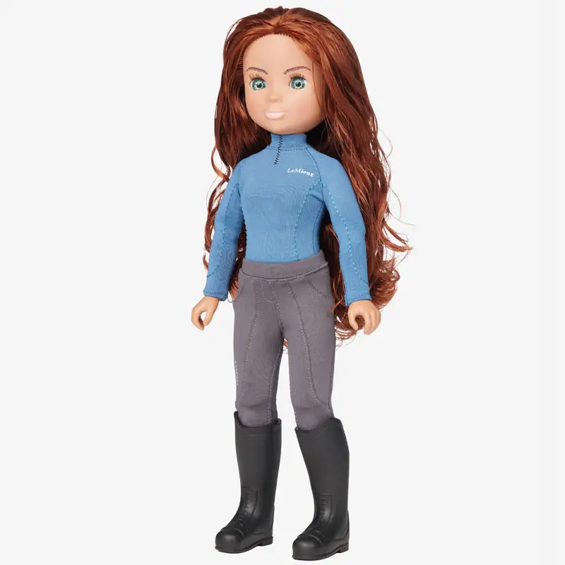 LeMieux Toy Rider Olivia in het Blauw gekleed is een hoogwaardige kwaliteit pop welke perfect te combineren is met de de LeMieux Toy Pony’s. De pop past perfect op de pony, zit keurig in het zadel in combinatie met de voeten in de stijgbeugels en de handen welke de teugels vasthouden. Het lange haar en de wimpers voelen echt aan. De kleding bestaat uit een cap met cap cover, shirt, broek en laarzen. De pop is zo realistisch mogelijk nagemaakt en kan zelfstandig staan.