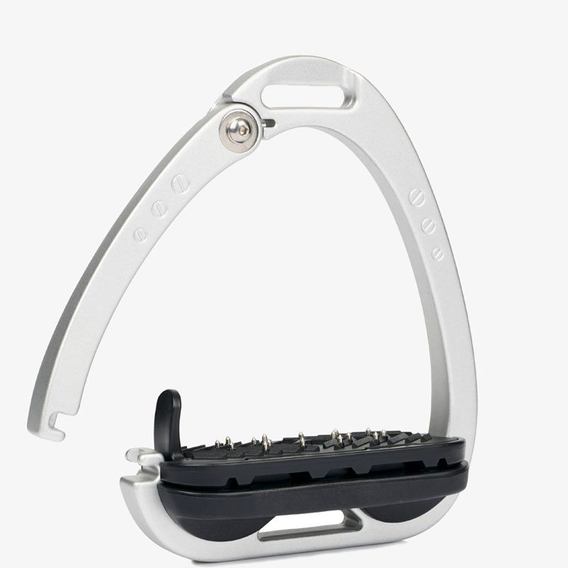 Het ergonomische voetgedeelte van de Vector Balance stijgbeugels heeft een kanteling van 5 graden, waardoor de voeten in een natuurlijke, anatomische houding worden gebracht en waardoor het risico kleiner wordt om de stijgbeugels tijdens het rijden te verliezen.