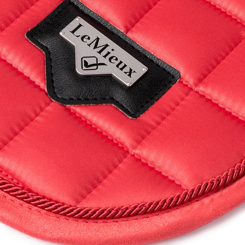 Het LeMieux zadeldek Loire Papaya is het meest verkochte LeMieux dekje alleen nu verkrijgbaar in een nieuwe zomerse kleur. Het dekje is gemaakt uit een geweven satijnen stof met een prachtige glans is voorzien van een zachte, ademende en vochtregulerende bamboe voering. Het dekje is afgewerkt met imitatie lederen verstevigingen op de plek van de singelstoten ter voorkoming van slijtage en heeft een luxe logo op de linker zijde.