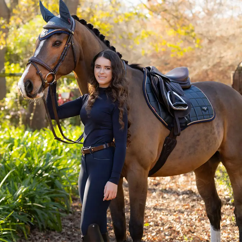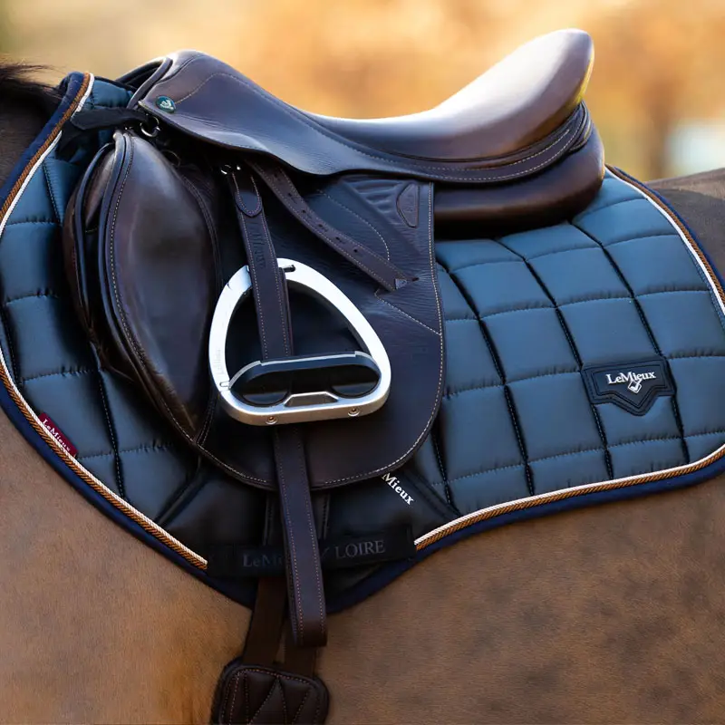 Het LeMieux zadeldek Loire Petrol is het meest verkochte LeMieux dekje alleen nu verkrijgbaar in een nieuwe collectie kleur. Het dekje is gemaakt uit een geweven satijnen stof met een prachtige glans is voorzien van een zachte, ademende en vochtregulerende bamboe voering. Het dekje is afgewerkt met imitatie lederen verstevigingen op de plek van de singelstoten ter voorkoming van slijtage en heeft een luxe logo op de linker zijde.
