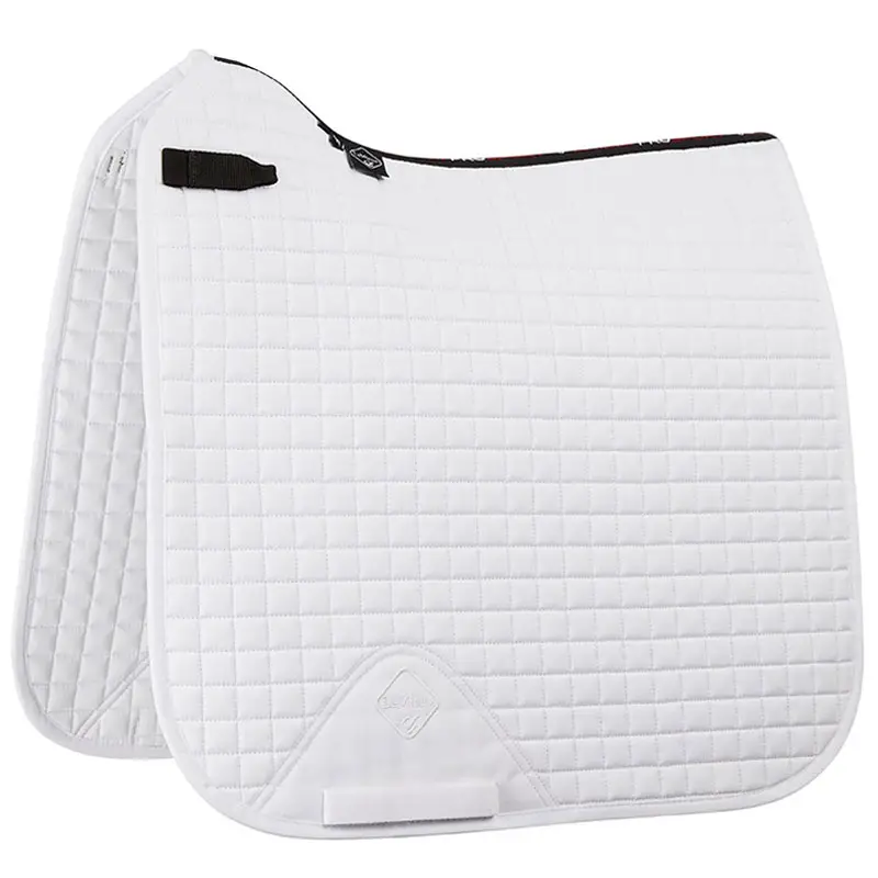 Anatomisch gevormd katoenen zadeldekje uit de LeMieux collectie. Het zadeldek is vierkant doorgestikt en is voorzien van katoenen voering en zadellussen met klittenbandsluiting. De singellussen zijn bevestigd op een verstevigd stuk om zo slijtage te voorkomen.