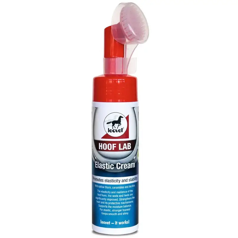 Leovet Hoof Lab elastische creme bevordert de elasticiteit en stabiliteit van de hoef. Samengesteld uit duindoorn, ceramiden en lecithine. De elasticiteit en belastbaarheid van het hoefhoorn en de hoefwanden worden aanzienlijk verbeterd. De elastische creme versterkt de hoef en zijn beschermungsmechanismes. Bevordert tevens het vochtbalans van de hoef. Voor soepele, krachtige, gladde en glanzende hoeven.