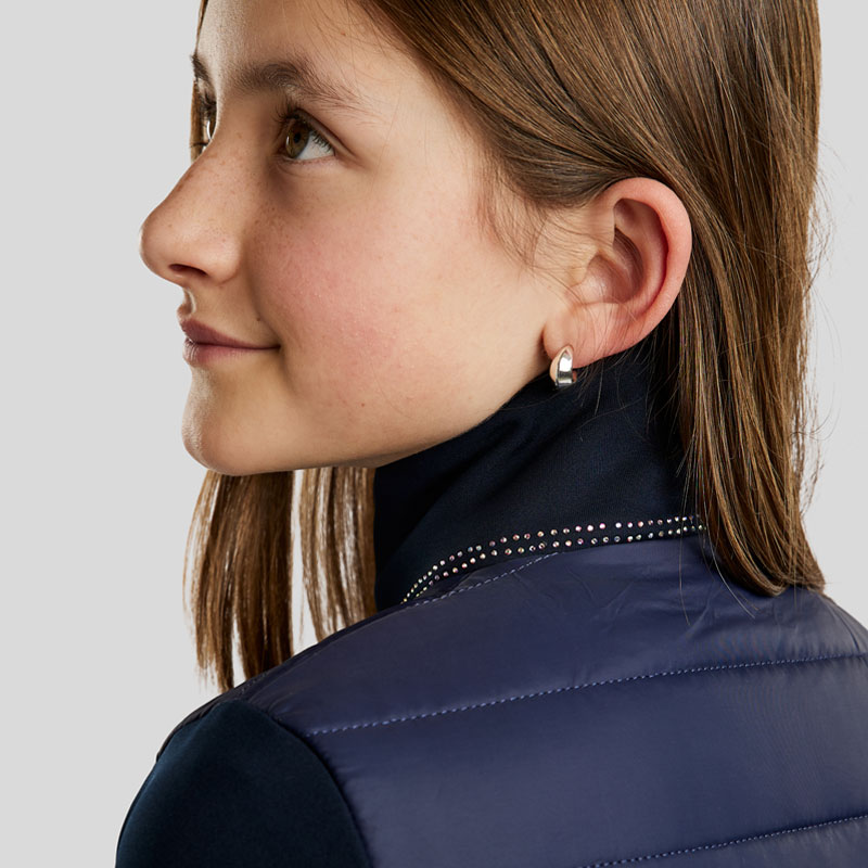 Montar Jas MoCha Kids Navy vervaardigd uit wind en waterafstotende stof. De jas is gewatteerd op de voor en achterzijde in combinatie met softshell materiaal op de mouwen. De jas is voorzien van zakken met ritssluitingen en groot horizontaal Montar logo op de voorzijde in Hologram effect.