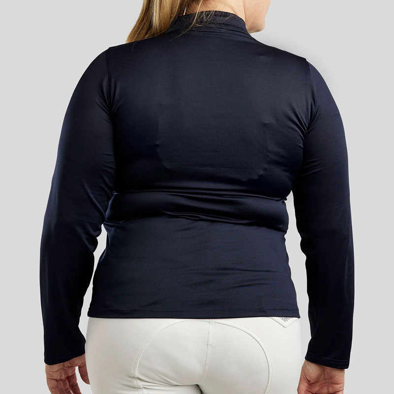 Montar Longsleeve Briella Curve Dark Navy. Modieus shirt voorzien van opstaand boordje met rits voor dames met een maatje meer.