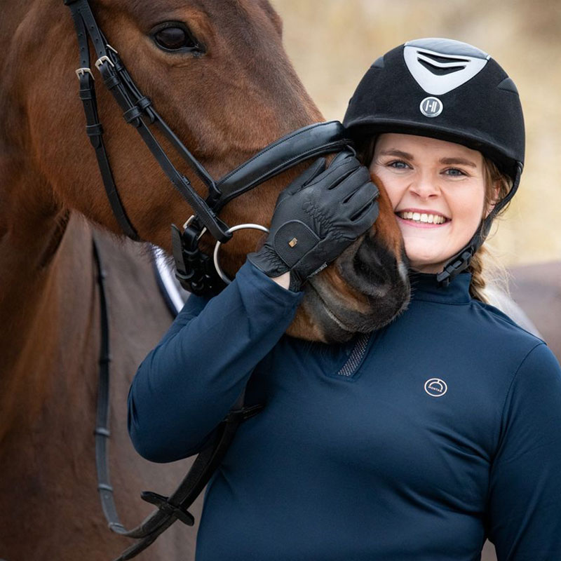 De longsleeve is vervaardigd uit een functionele MonTech stof welke zorg draagt voor een hoog ademend vermogen en een comfortabel gevoel tijdens het rijden. Verder is de longsleeve afgewerkt met rosegoude crystal steentjes en Montar logo op de borst.
