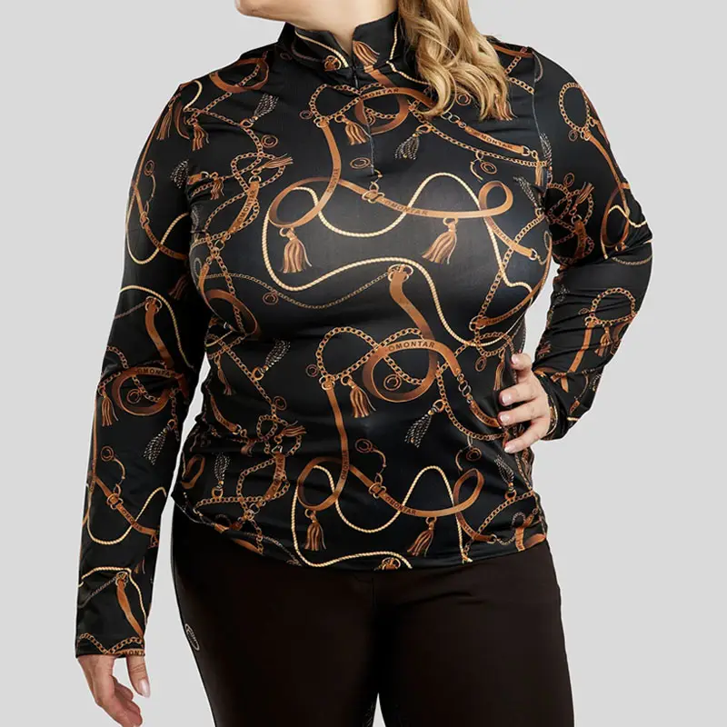 De Montar longsleeve Haily Curve is vervaardigd uit een comfortabele, functionele stof met vochtregulerende en ademende eigenschappen. Deze stof is volledig elastisch, voelt zacht aan en biedt optimale flexibiliteit en bewegingsvrijheid. Het shirt is voorzien van opstaand boordje in combinatie met rits.