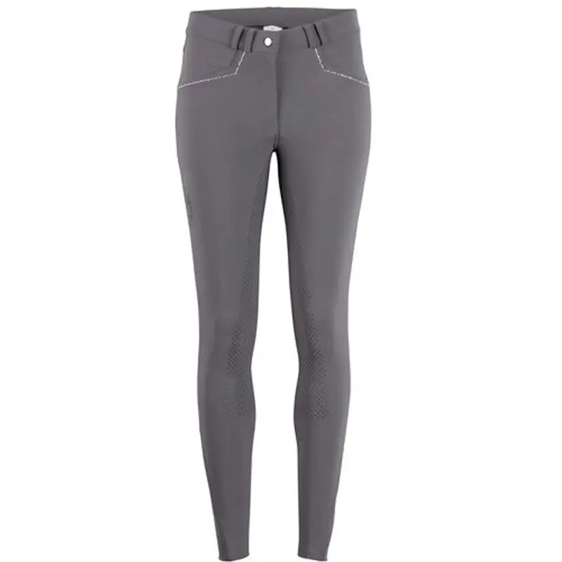 Modieuze kinder rijbroek van het merk Montar met een Full Grip zitvlak en elastisch gedeelte bij de enkels. De rijbroek is vervaardigd uit een comfortabele, elastische stof en is voorzien van jeanspockets aan de voor- en achterzijde afgewerkt met glinsterend Lurex garen en strass steentjes.