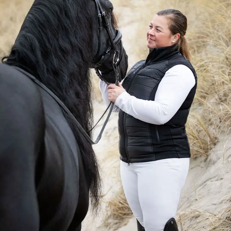 De Montar wedstrijdbroek Megan Full Grip Curve is vervaardigd uit de welbekende Yati stof. Deze stof is vuil en waterafstotend en zeer comfortabel in gebruik. De rijbroek heeft een hoge aansluitende band met een dubbele sluiting en Full Grip siliconen zitvlak in combinatie met elastische gedeelte bij de enkels.