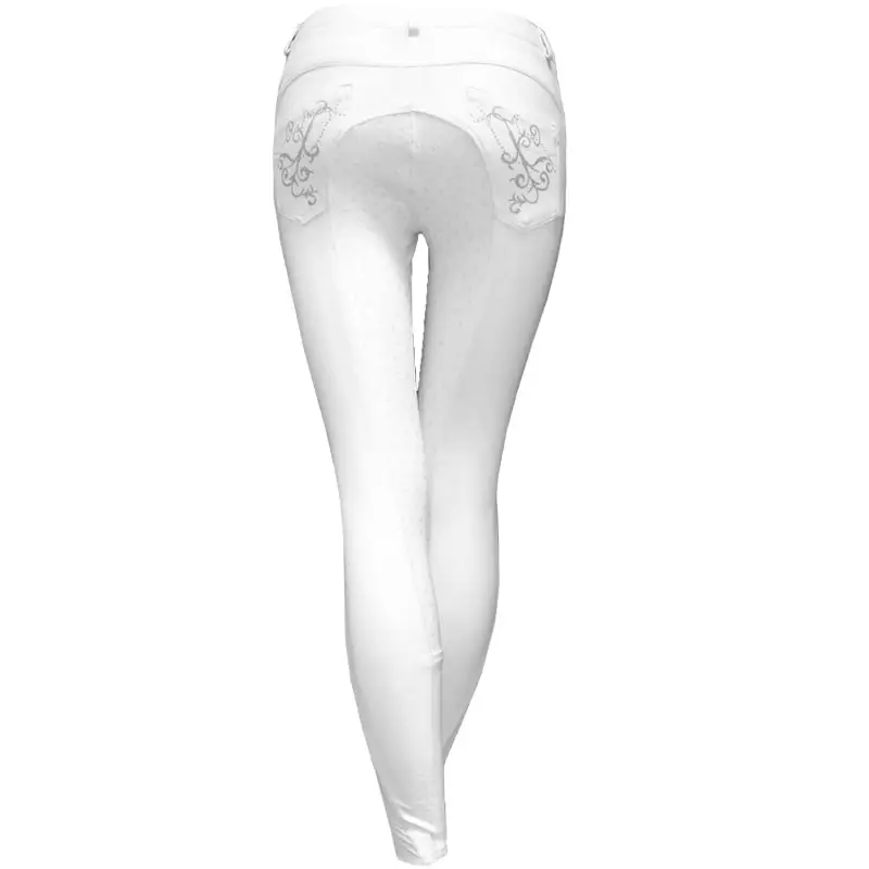 Kinder rijbroek Silver van het merk Montar is een paardrijbroek welke is uitgevoerd met jeanspockets aan de voor- en achterzijde. De rijbroek is afgewerkt met een siliconen zitvlak, elastisch gedeelte bij de enkels en geborduurde applicaties.