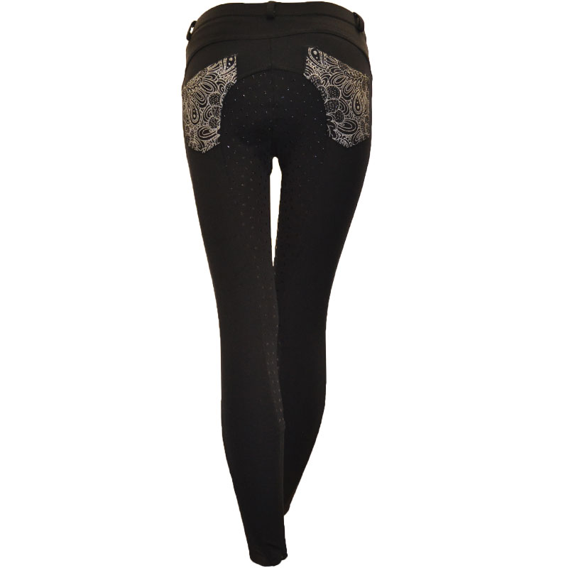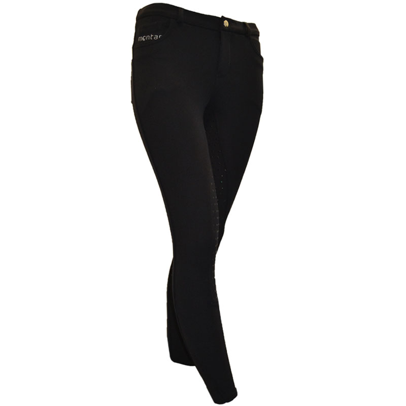 Kinder rijbroek Silver van het merk Montar is een paardrijbroek welke is uitgevoerd met jeanspockets aan de voor- en achterzijde. De rijbroek is afgewerkt met een siliconen zitvlak, elastisch gedeelte bij de enkels en geborduurde applicaties.