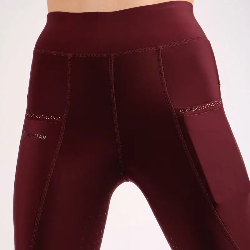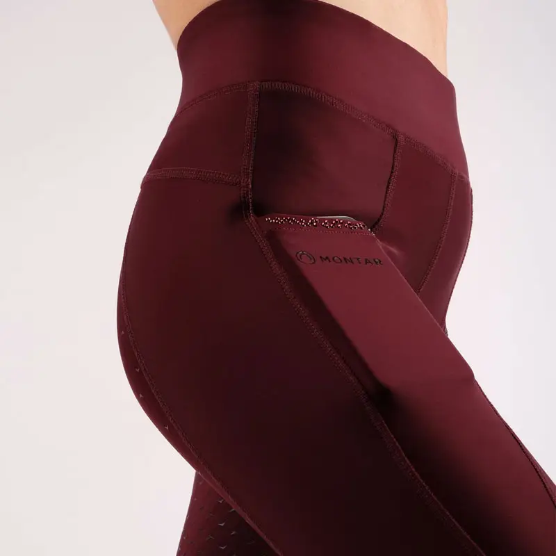 De Montar rijlegging Linnea Plum is een dunne, elastiche en comfortabele rijlegging voor dames. De rijlegging heeft een Full Grip siliconen zitvlak, is elastisch bij de enkels en is afgewerkt met telefoonzakken in combinatie met fraai Montar logo en strass steentjes.