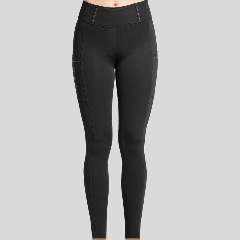Montar Rijlegging MoEdith Crystal Zwart. Comfortabele met geborsteld fleece gevoerde rijlegging voor dames uitgevoerd met een brede aansluitende tailleband, mobiele telefoonzak op beide benen en een Full siliconen zitvlak voor extra Grip in het zadel.