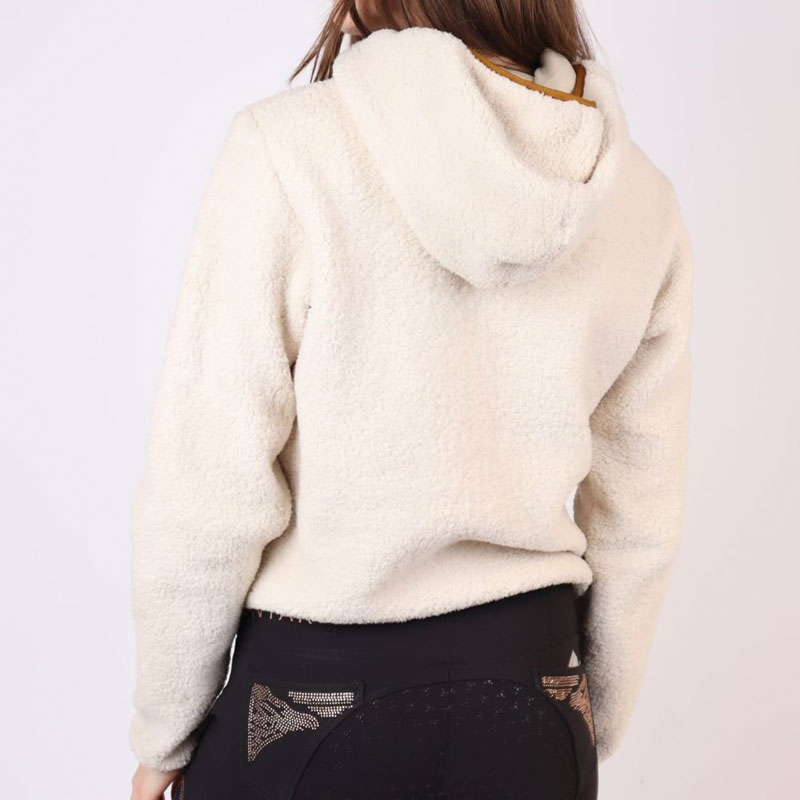Schitterend modieus Montar teddy vest Off White voor dames voorzien van tweeweg ritssluiting, capuchon en subtiel Montar logo verwerkt in de stof op de linker mouw.