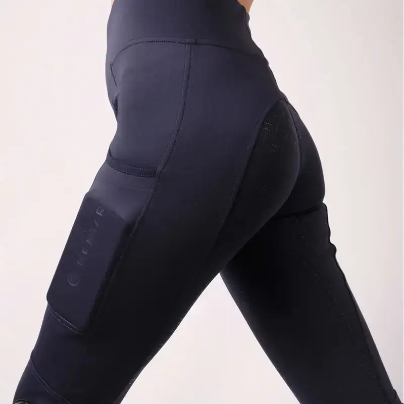 De Montar legging Eden navy voor dames is voorzien van fleece voering aan de binnenzijde met Full siliconen Grip zitvlak. De rijlegging is vervaardigd uit wind en waterafstotende softshell stof en heeft een hoge brede elastische tailleband.