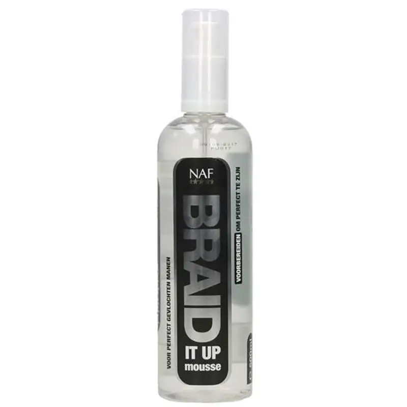 Gebruik: Na het uitborstelen direct op de manen inmasseren. NAF Braid It Up mousse zorgt voor een goede grip waardoor de manen snel en makkelijk gevlochten kunnen worden, in een korte tijd. Na het vlechten of knotten kan deze mousse ook over de manen gesmeert worden voor een uniek resultaat. Ook te gebruiken de avond voorafgaand het evenement of concours.