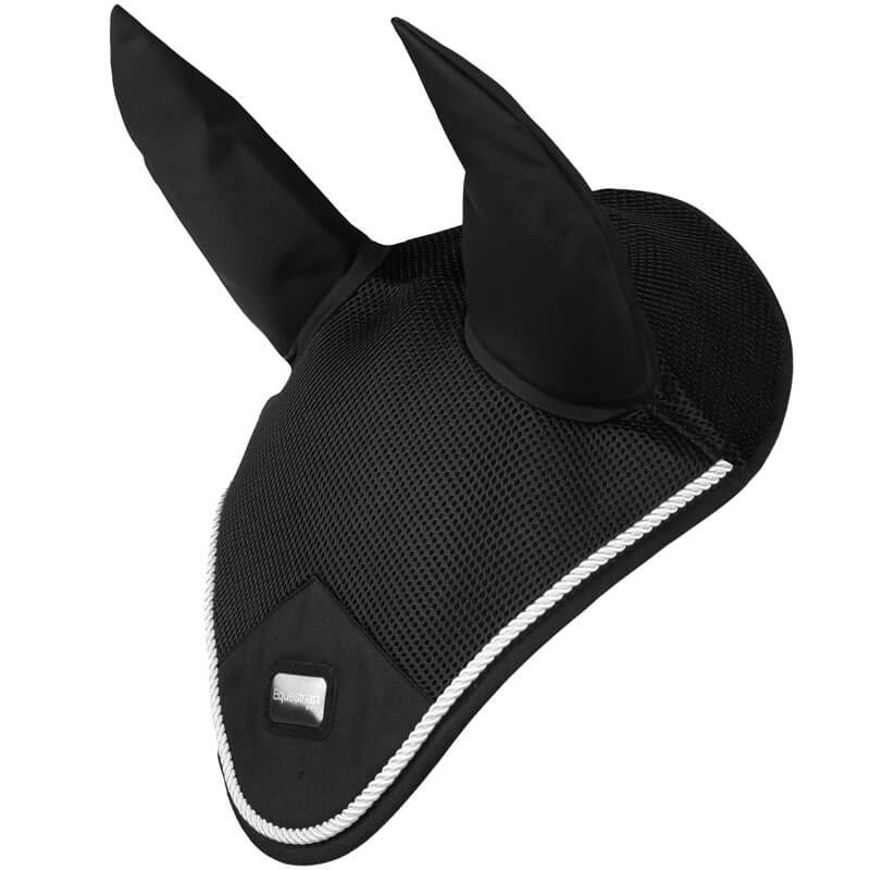 Oornetje EQPRO Precious Zwart vervaardigd uit ademend mesh met elastische oren. Het oornetje is afgewerkt met parelmoer kleurig detail en lichtgewicht badge in het midden gecentreerd.