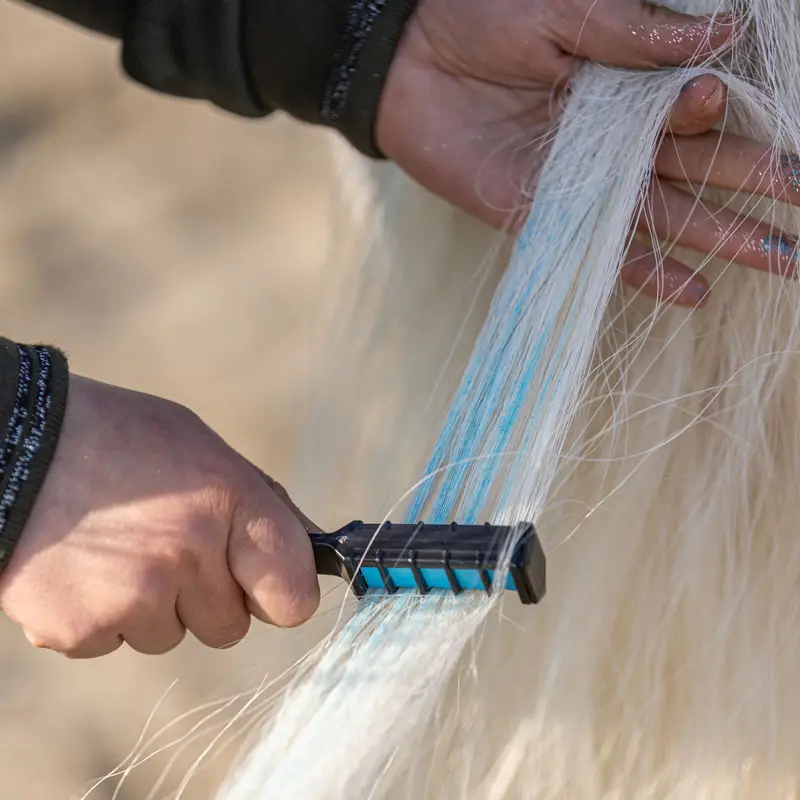 Met het Paardenpraat Regenboog Kleurkrijt verander je jouw paard of pony gemakkelijk in een Unicorn. De krijtjes zijn verwerkt in een kam, waardoor deze zijn aan te brengen op de staart en mamen. De Paardenpraat haarkrijtjes zijn veilig voor paarden en eenvoudig uit te wassen met shampoo.