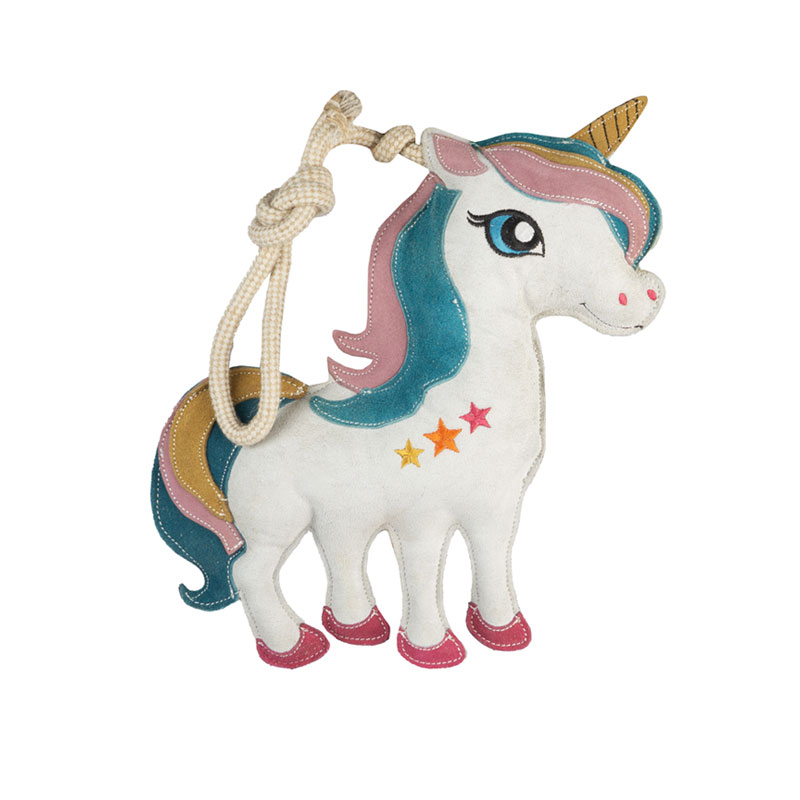 Paardenspeelgoed Horka Eenhoorn gemaakt uit sterk suede leer. Het paardenspeelgoed kan gebruikt worden om verveling op stal tegen te gaan en stress te verminderen in stal, paddock of op de wei.