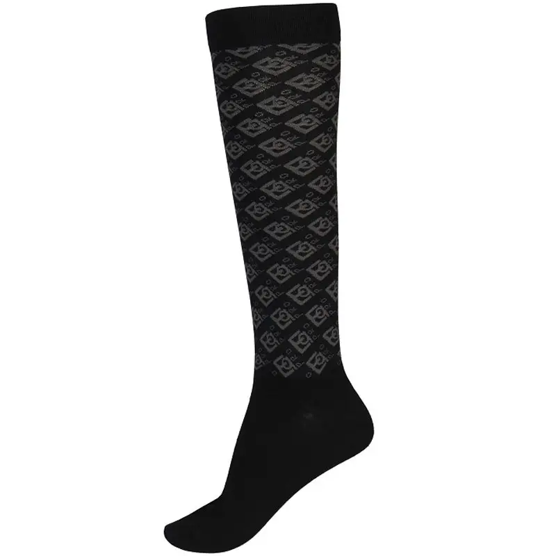 Paardrijsokken Horka Classic Zwart gemaakt uit comfortabel materiaal met een verstevigd voetbed. De sokken zijn afgewerkt met een all-over “EQPro” print.
