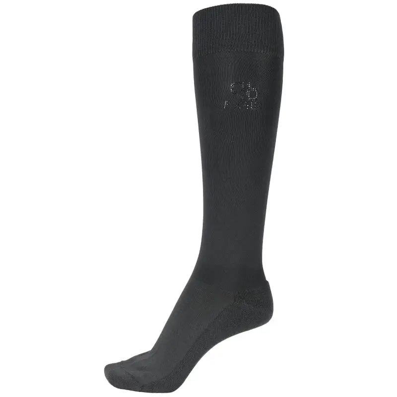 De Paardrijsokken Pikeur Strass Blackolive zijn voorzien van een verstevigd voetbed met een dunnere elastische stof op de kuit. De kniekousen zijn afgewerkt met Pikeur logo gemaakt uit strass.