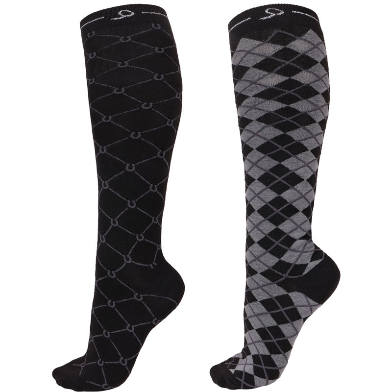 De Paardrijsokken QHP Classic Midnight zijn verpakt per twee paar. Deze elastische kniekousen dragen zorg voor een comfortabele pasvorm in je schoenen en rijlaarzen. Deze sokken zijn erg geschikt om te dragen in hoge rijlaarzen.