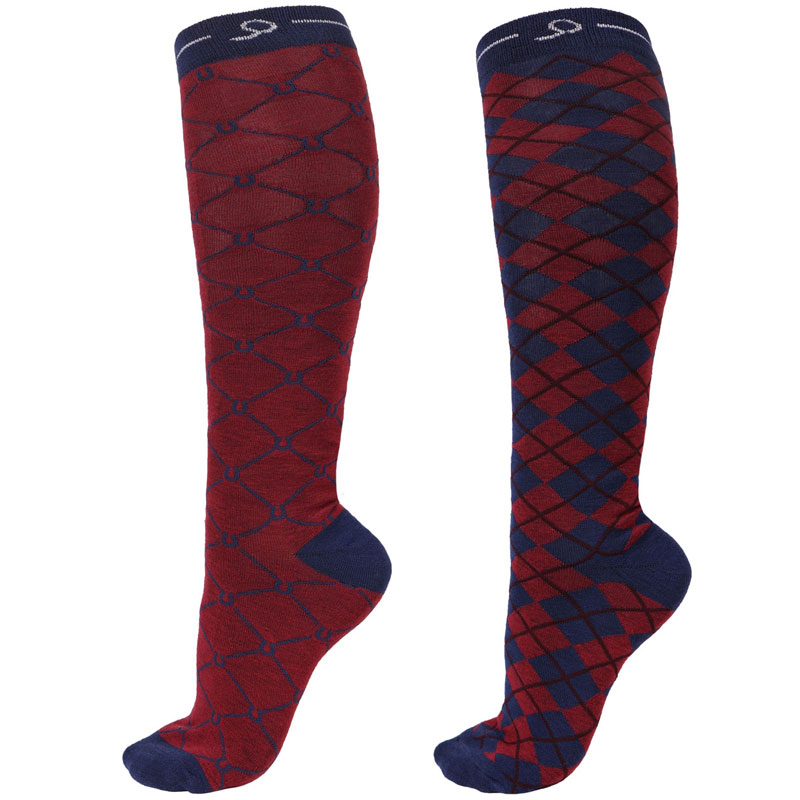De Paardrijsokken QHP Classic Wine Red zijn verpakt per twee paar. Deze elastische kniekousen dragen zorg voor een comfortabele pasvorm in je schoenen en rijlaarzen. Deze sokken zijn erg geschikt om te dragen in hoge rijlaarzen.