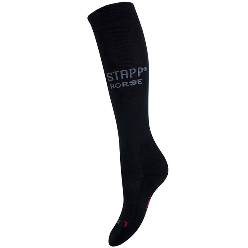 Paardrijsokken Stapp Horse Deocell Zwart gemaakt uit vormvaste en vochtregulerende polyamide. De kniekous is effen gekleurd en heeft een Stapp Horse logo in contrast kleur. De kniekous is afgewerkt met comfortabele platte naden.
