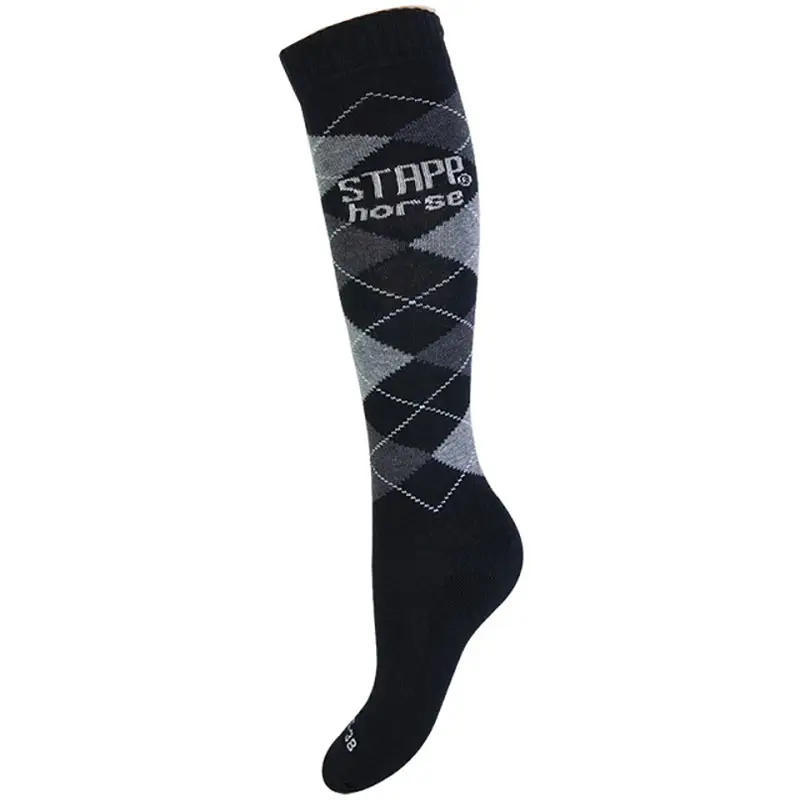 De Paardrijsokken Stapp Horse Ruit Nero heeft een comfortboord en is gemaakt uit katoen in combinatie met badstof wat zorg draagt voor schokdemping. De kniekous is elastisch wat mede zorg draagt voor een optimale pasvorm. De kniekousen zijn verder naadloos en door de speciale breimethode wordt ervoor gezorgd dat het vocht wordt afgestoten en dat het zuurstof gehalte onder het voetbed wordt verhoogd.