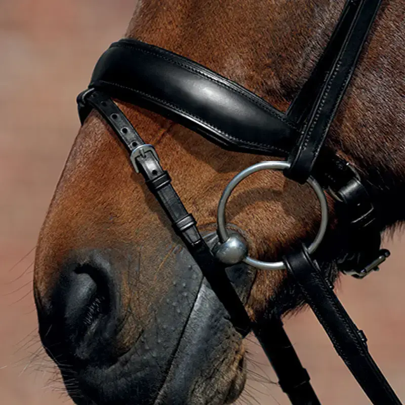 Topkwaliteit lederen neusriem van het merk Passier. De kopriem is aan enkele zijde voorzien van gesp en de neusriem is uitgesneden, zodat de neusriem nauwelijks in contact kan komen met het bit.
