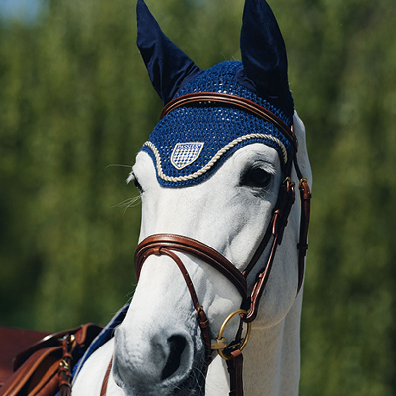 Gehaakt oornetje ook wel vliegennetje genoemd van het merk Passier. Afgewerkt met goudkleurig koord en Passier wapenschild aan de voorzijde. De oren zijn vervaardigd uit elastisch materiaal.