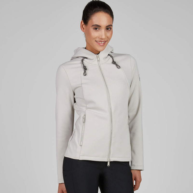 Pikeur Fleece Vest 8045 Pale Grey. Modieus en comfortabel dames fleece jacket gemaakt uit tech fleece materiaal met een warme geborstelde fleece binnenzijde en capuchon. Het vest houdt de wind grotendeels tegen en draagt er zorg voor dat het vocht maximaal wordt geabsorbeerd. Het vest heeft een getailleerde pasvorm en is voorzien van een tweeweg ritssluiting, zakken met ritssluitingen en een afwerking met Pikeur Selection logo uit strass langs de rand van de capuchon.