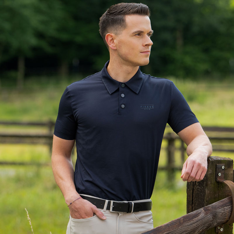 Pikeur Function Shirt 7249 Sports Heren Nachtblauw. Poloshirt voor heren uit de Pikeur collectie gemaakt uit een gladde stof met een fijne structuur. Het shirt is voorzien van een knoopsluiting en is afgewerkt met het Pikeur logo op de borst.