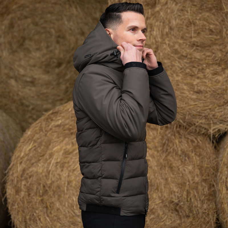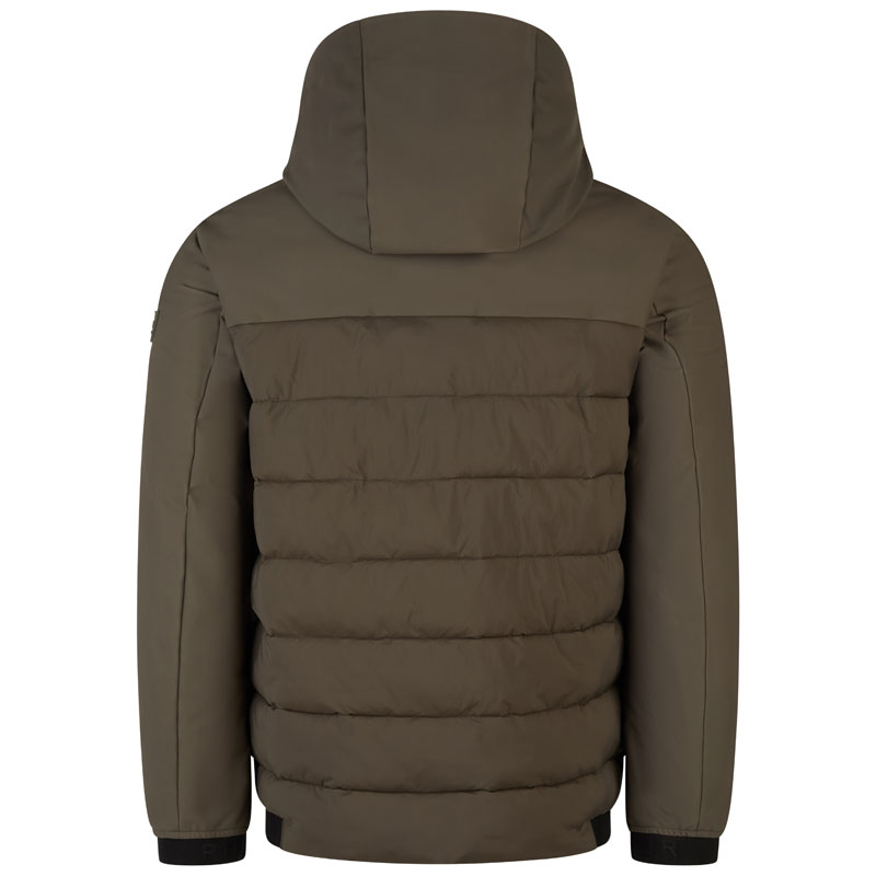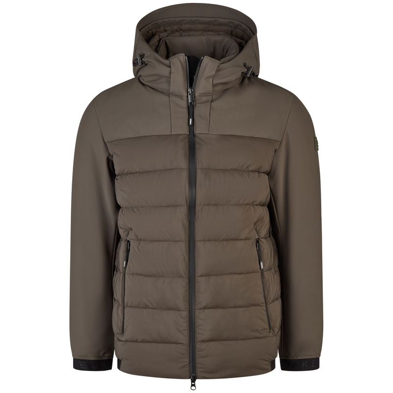 Pikeur Hybrid Jas 8011 Heren Deep Khaki voorzien van afneembare capuchon, tweeweg ritssluiting en zakken met ritssluitingen. De Fibreball vulling draagt er zorg voor dat de warmte optimaal wordt gereguleerd.