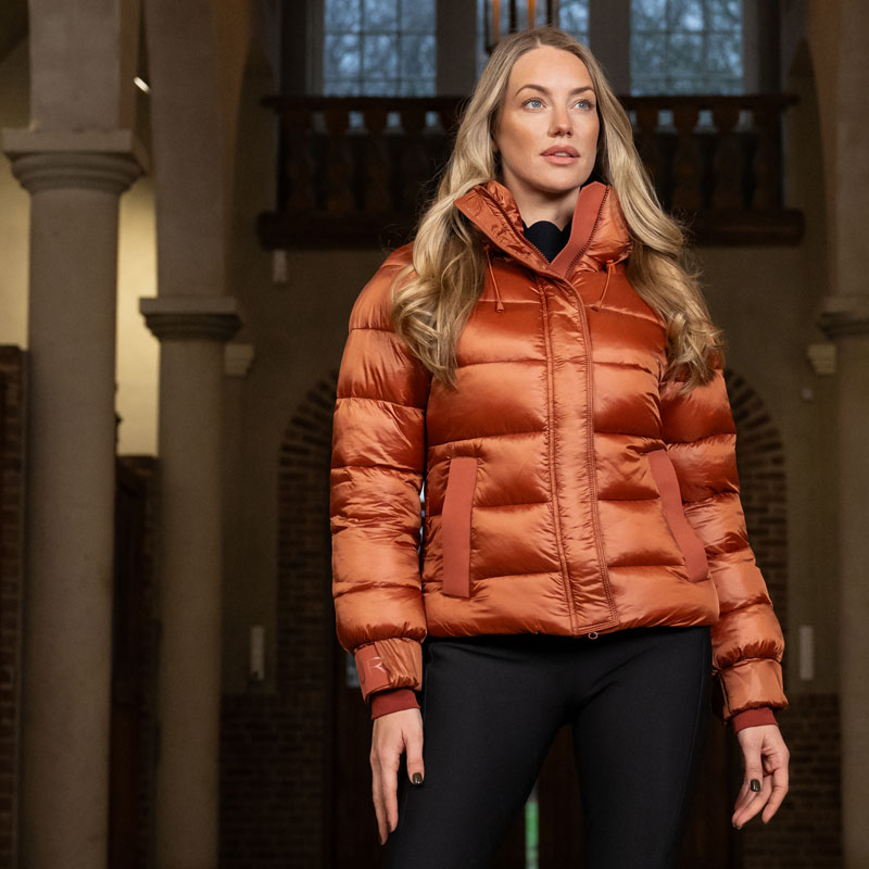 Pikeur Jas 8016 Rose Wood uit de Selection collectie met afneembare capuchon. Dit korte model warme gevoerde winterjas is gemaakt uit hoogwaardige kwaliteit glanzend nylon materiaal. De jas heeft een Sorona Fibreball vulling welke de warmte optimaal reguleerd. Verder is de jas voorzien van verstelbaar klittenband aan de uiteinde van de mouwn, zakken met ritssluitingen, mobiele telefoonzak aan de binnenzijde en een afwerking met Pikeur selection badge op de mouw en siliconen print op de rand van de capuchon.