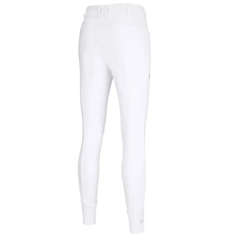 Pikeur Rijbroek Ceelina SD 4575 Selection Wit. Luxe wedstrijdbroek voor dames gemaakt uit een hoogwaardige kwaliteit 4-weg elastisch technische stof. De rijbroek heeft een brede tailleband met een dubbele schuifsluiting wat zorg draagt voor een hoog draagcomfort. Verder is de rijbroek voorzien van zakken afgewerkt met strass details aan de voorzijde, decoratieve zakken aan de achterzijde en elastisch gedeelte aan de onderzijde bij de enkels.
