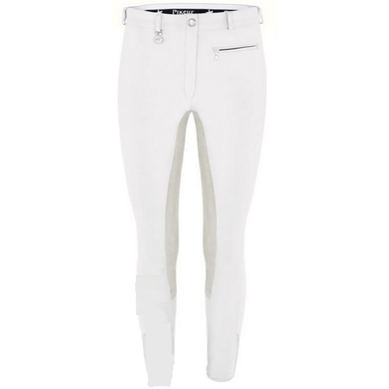 Dames rijbroek Lucinda van het merk Pikeur is voorzien van een lage band, zakje met ritssluiting, logo op het linkerbeen, kunstlederen zitvlak en elastisch gedeelte aan de onderzijde bij de enkels.
