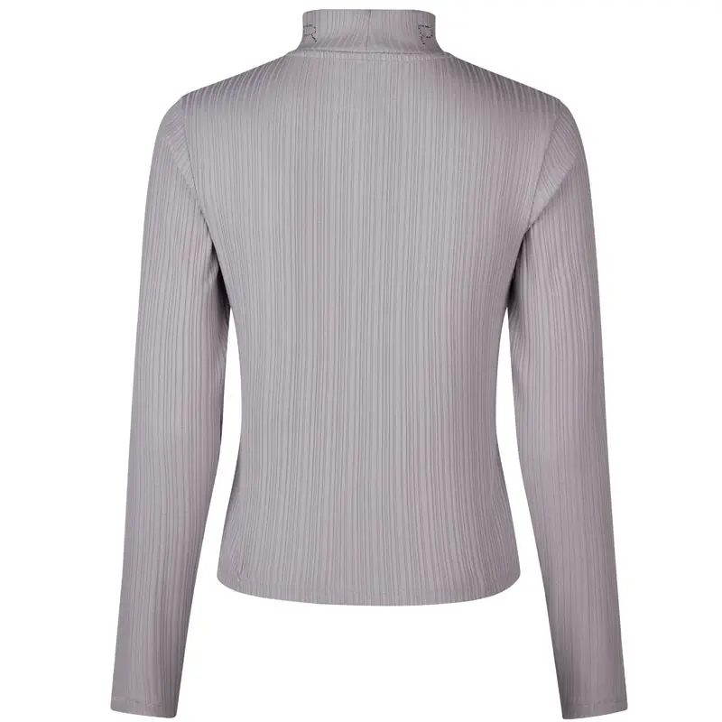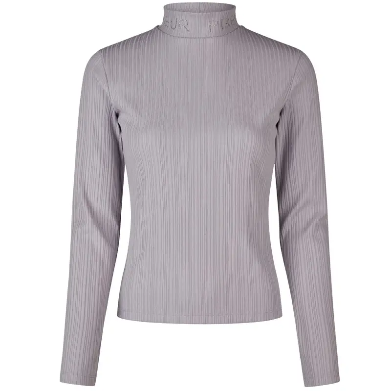 Pikeur Rip Shirt 6277 Selection Cloud Lilac voor dames gemaakt uit geribbelde stof met opstaande kraag in combinatie met Pikeur logo uit strass.