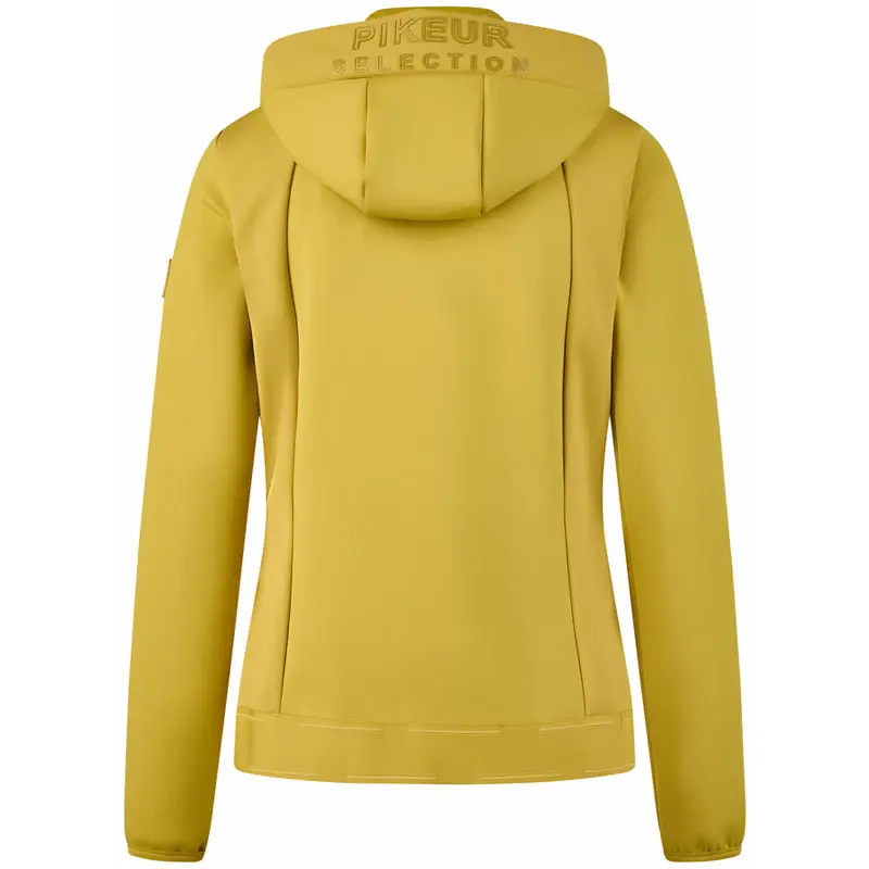 Pikeur Techjersey Vest 7045 Selection Golden Olive voor dames is uitgevoerd met een vaste capuchon, tweeweg ritssluiting en zakken met ritssluitingen. Het vest is gemaakt uit een antistatiche, lichtgewicht stof gecombineerd met een elastische ribstop. Het vest is afgewerkt met Pikeur labeling op de rand van de capuchon en Selection logo op de linker mouw.