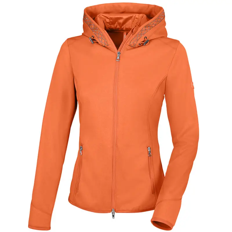 Dames Pikeur vest Dalina Peach is vervaardigd uit een mooie kwaliteit zomer fleece voorzien van capuchon afgewerkt met strass steentjes. Het vest is voorzien van tweeweg ritssluiting, zakken met ritssluitingen en Pikeur logo op de mouw.