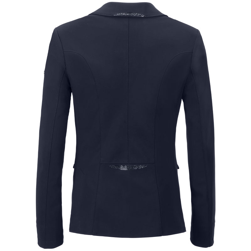 Het Pikeur wedstrijdjas Isalinne kids nachtblauw is gemaakt uit hoogwaardige kwaliteit ademende softshell. Het wedstrijdjasje is elastisch en heeft een slanke pasvorm. Het jasje is voorzien van klepzakjes afgewerkt met schitterende strass steentjes op de voorzijde en heeft een dubbele split met strass steentjes op de achterzijde. Het jasje is licht in gewicht en heeft een luchtige mesh voering.