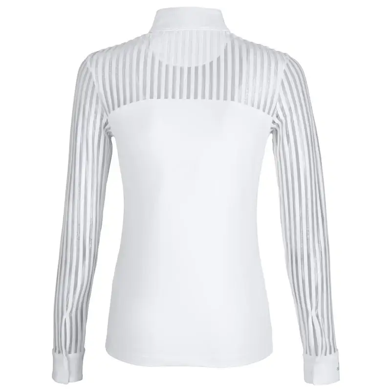 Schitterend Pikeur wedstrijdshirt 5290 Selection Wit vervaardigd uit functionele stof in combinatie met mesh. Het shirt is 4-weg elastisch, sneldrogend en ademend. Verder is het wedstrijdshirt voorzien van een verborgen knoopsluiting, opstaand boordje en strass details.