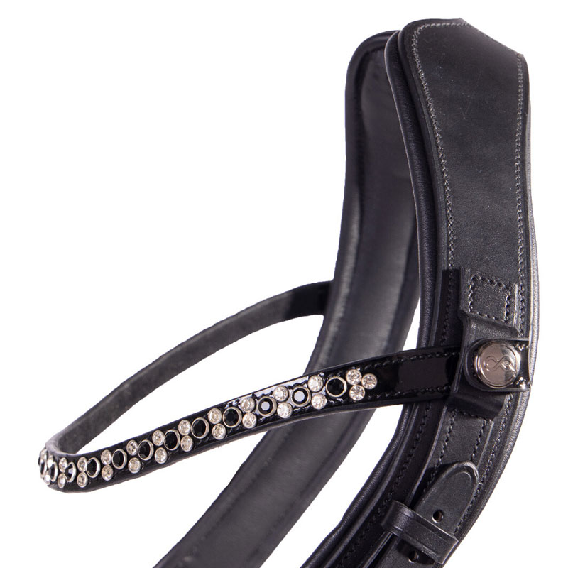 * laklederen neusriem in combinatie met glitterrand