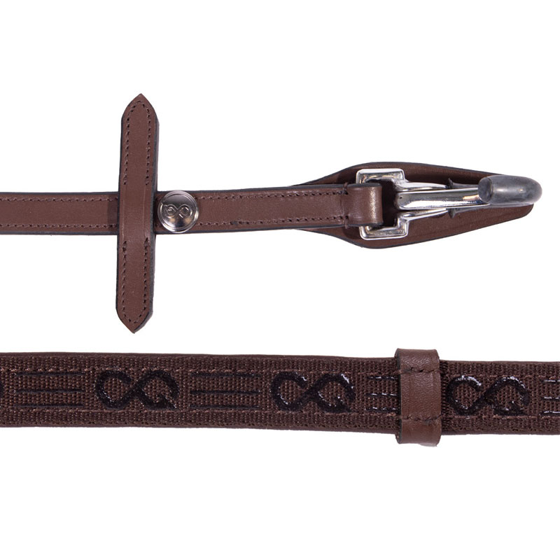 De PresTeq Teugel FayRein Met Clips Bruin is een innovatieve lederen teugel met anti-slip aan de binnenkant voor extra grip. De uiteinden van de teugel zijn aan de binnenzijde voorzien van een zachte stof om schuurplekken op de hals te voorkomen. Door de handige clips is de teugel makkelijk te bevestigen en los te maken. De clips zijn afgewerkt met rubber en een lederen flap ter bescherming van de paardenmond. De teugel is 16 mm breed en ligt fijn en soepel in de hand. De teugel is voorzien van stops met een tussenafstand van 8 cm.