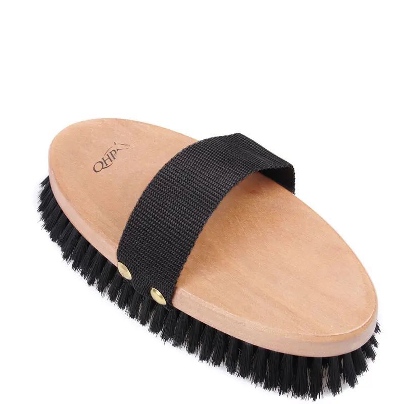 De QHP borstel Color zacht zwart is voorzien van houten greep met handlus en zachte nylon haren.