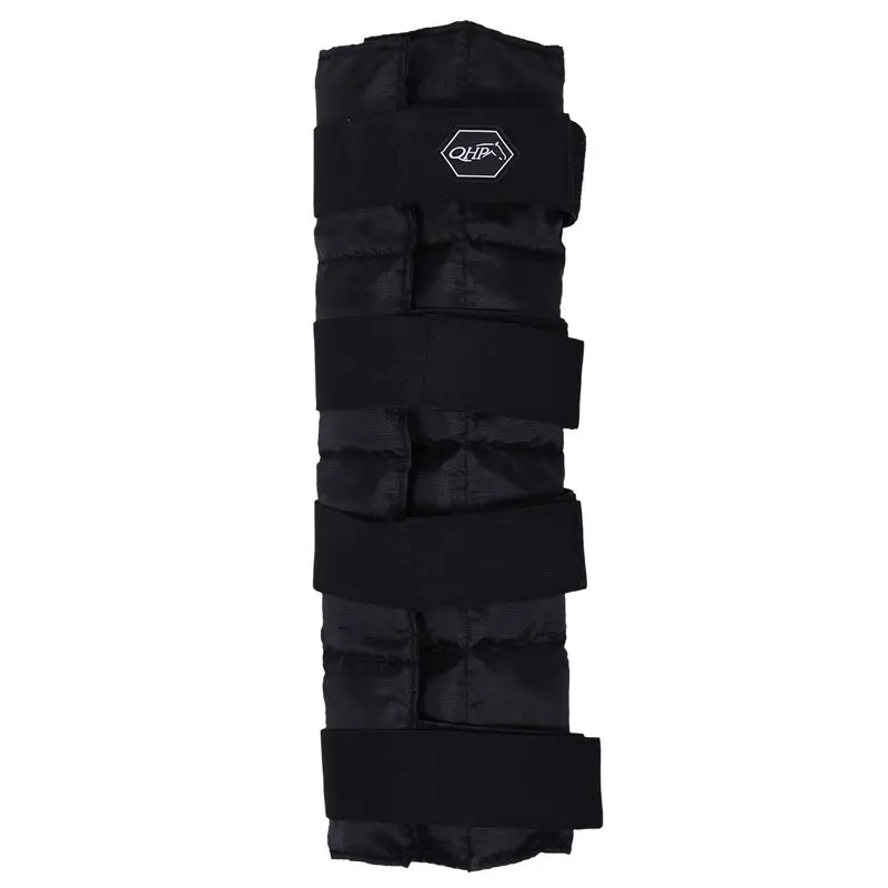 Nieuw model cooling bandage van het merk QHP. De bandage kan in zijn geheel in de vriezer worden gelegd en is te bevestigen door het gebruik van 4 klittenbandsluiting om het paardenbeen. In de bandage zijn kleine gel packs verwerkt die de kou extra lang vasthouden. Door de zachte foam voering blijft de beschermer flexibel en zacht voor het paardenbeen.
