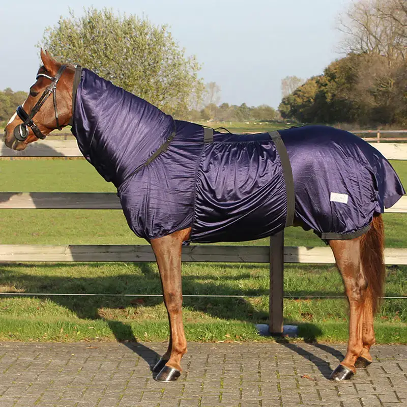 Eczeemdeken van het merk QHP. De deken is zeer fijnmazig en voorzien van vaste hals met elastische afsluiting, brede buikflap met elastische, verstelbare singels en ruime staartflap. De deken heeft kunststof fournituren, is verstelbaar op de schouders, heeft een sluiting tussen de voorbenen voor de bevestiging aan de buikflap en heeft elastische, verstelbare lieskoorden.