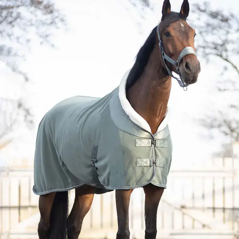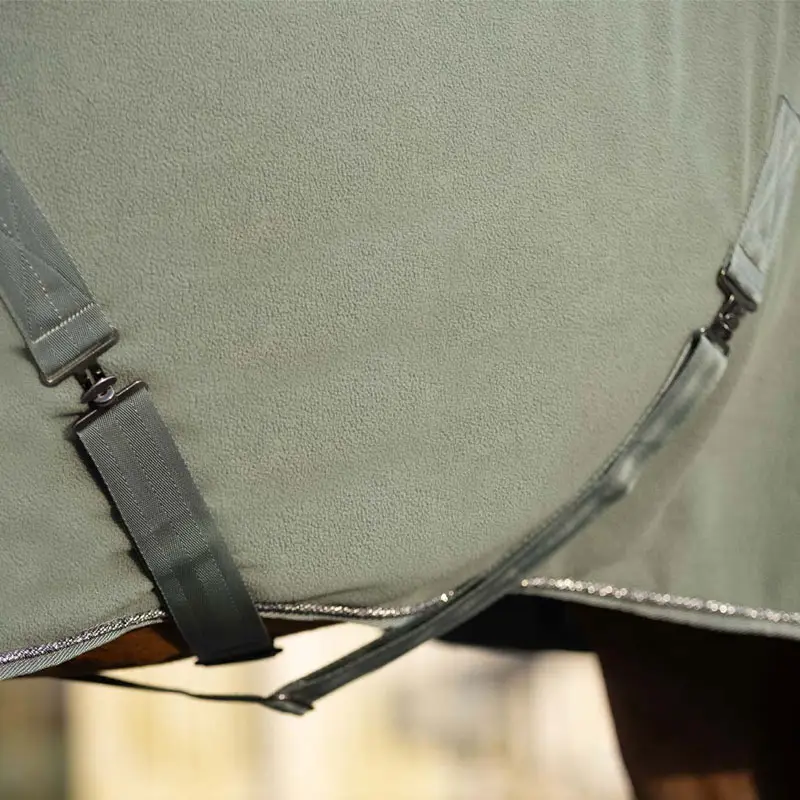 De QHP fleecedeken Gloss Olijf is gemaakt uit extra zacht fleece in combinatie met een satijnen kraag met imitatiebont. De kraag is afgewerkt met glitter koord en Equestrian Sports tekst wat zorgt draagt voor een fraaie uitstraling. De QHP deken Gloss is uiterst geschikt voor het transporteren van het zweet bij een nat paard, maar kan ook perfect gebruikt worden als show of transportdeken.