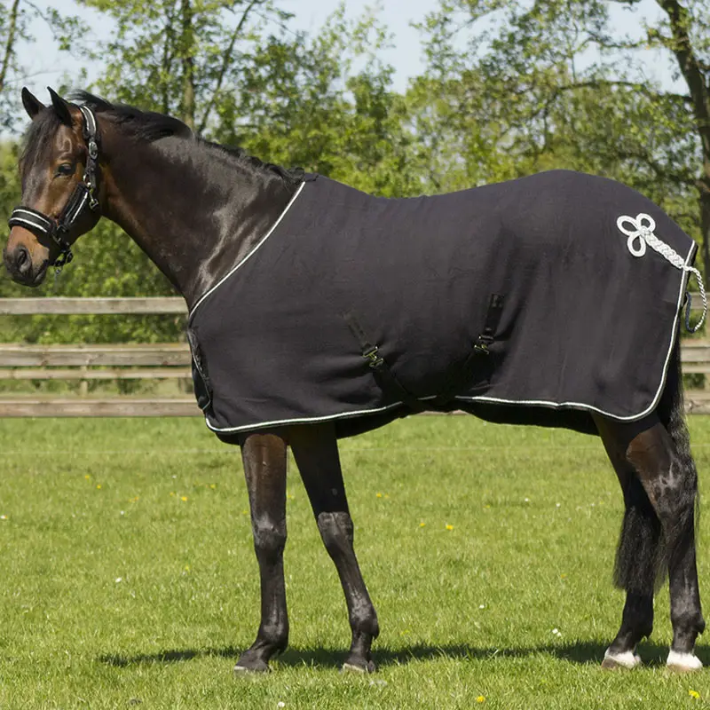 De QHP fleecedeken Ornament is zoals de naam zegt afgewerkt met Ornament (luxe koord). De deken heeft een brede borstflap in combinatie met een dubbele koppelsluiting op de borst en is voorzien van afneembare kruissingels. De QHP fleecedekens Ornament zijn ideaal voor de zweetopname maar worden o.a. ook gebruikt voor transport of als showdeken.