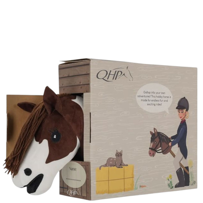 QHP Hobby Horse Bruin Bont. Dit stokpaard uit de QHP Hobby Horse collectie houdt ervan om geknuffeld te worden, verzorgt te worden en houdt van training en wedstrijd. De QHP Hobby Horses voelen zacht aan en de manen kunnen gevlochten worden voor een verzorgde look. Natuurlijk zijn er ook bijpassende accessoires zoals een hoofdstel, deken, oornetje en halster verkrijgbaar.