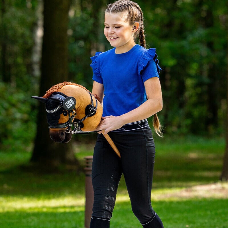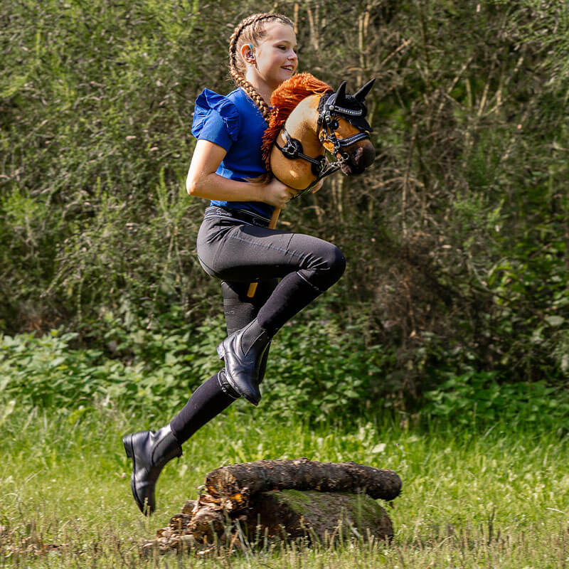 QHP Hobby Horse Chestnut. Dit stokpaard uit de QHP Hobby Horse collectie houdt ervan om geknuffeld te worden, verzorgt te worden en houdt van training en wedstrijd. De QHP Hobby Horses voelen zacht aan en de manen kunnen gevlochten worden voor een verzorgde look. Natuurlijk zijn er ook bijpassende accessoires zoals een hoofdstel, deken, oornetje en halster verkrijgbaar.